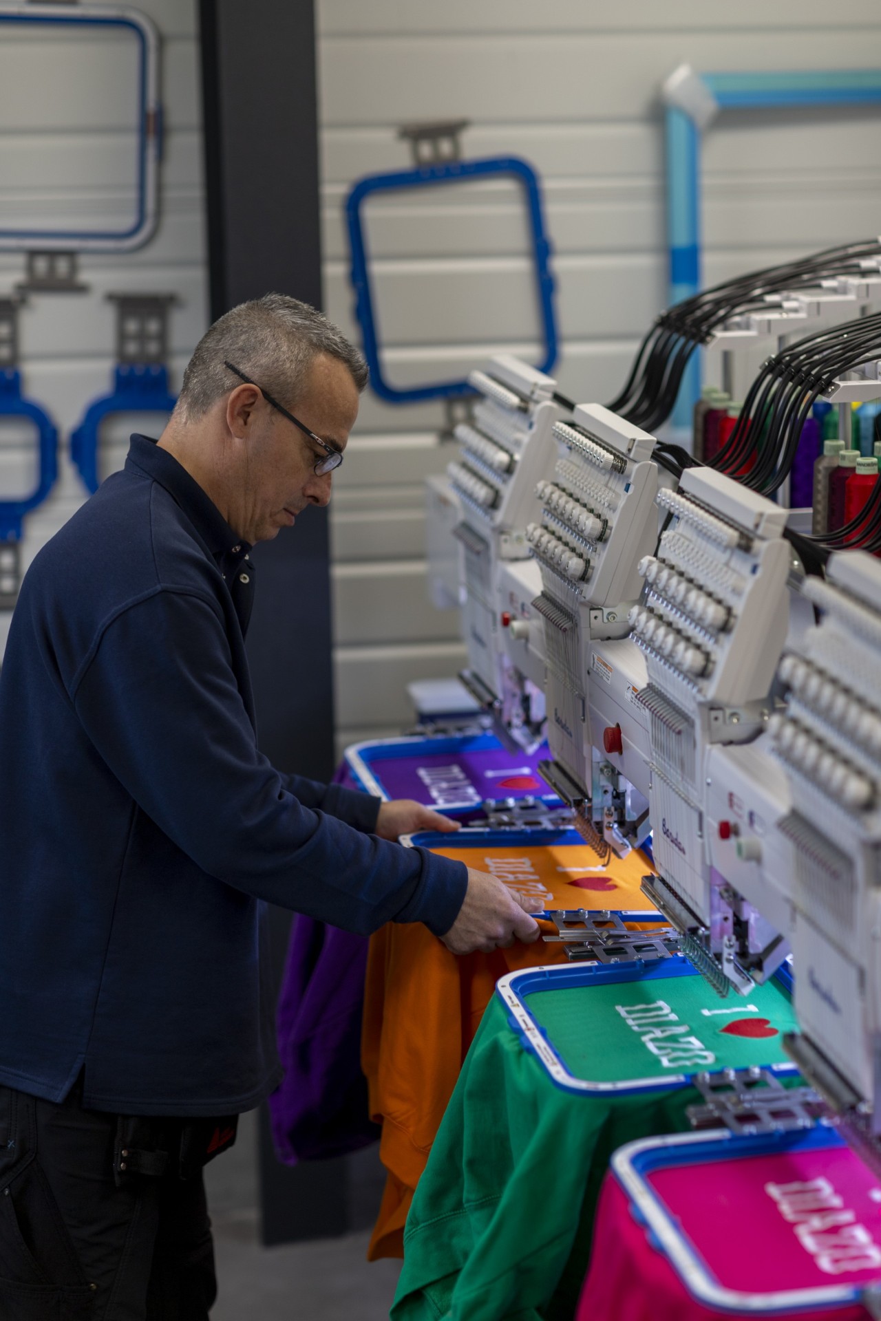 Notre atelier dédié garantit réactivité, souplesse et fabrication sur-mesure, pour des projets de marquage textile ou broderie parfaitement maîtrisés.